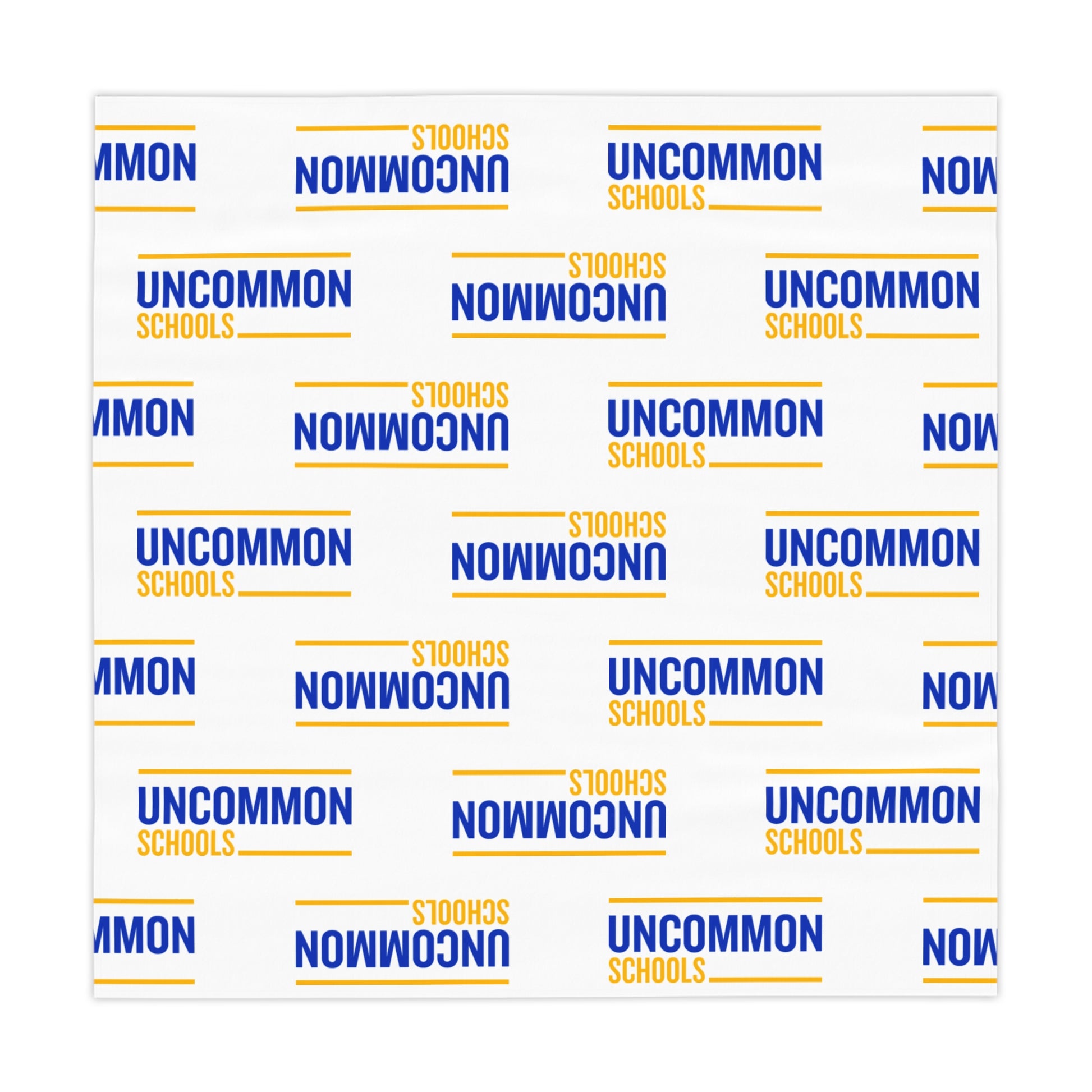 A crisp, modern tablecloth that brings school spirit to any gathering. The bold blue borders frame a clean white center, letting your tableware shine while the subtle ‘UNCOMMON SCHOOLS’ text adds a collegiate, confident touch. Lightweight and soft, it drapes easily over square tables and refreshes everyday meals, study sessions, and community events with a neat, energetic look. It washes and dries quickly, so it’s ready for the next meeting, open house, or casual lunch.